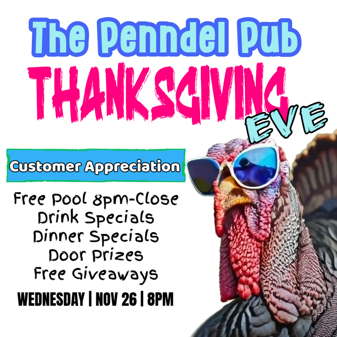 It’s customer appreciation night at the PUB! Kick Thanksgiving festivities off right with free pool (8pm – close), dinner and drink specials, door prizes, and free giveaways.